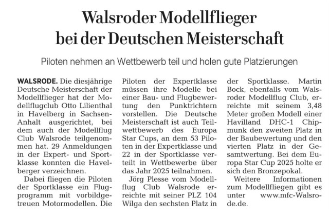 Quelle: Walsroder Zeitung vom 30.07.2025 |